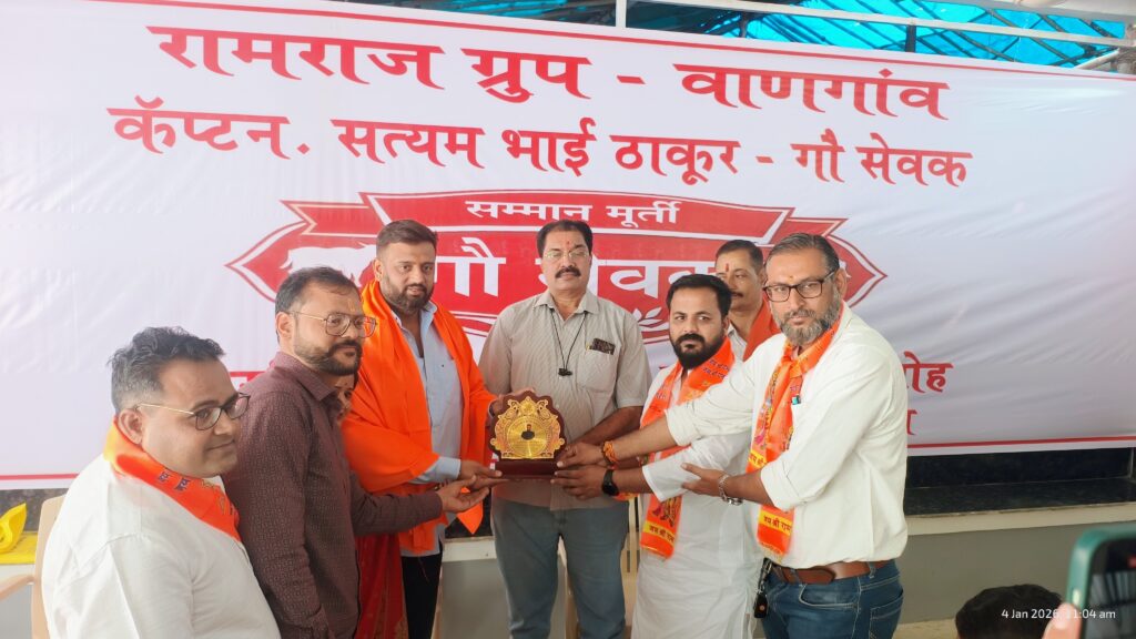 पालघर जिले में गौ सेवा और संरक्षण को नई दिशा देने वाला एक महत्वपूर्ण कार्यक्रम वानगांव में आयोजित किया गया। रामराज ग्रुप एवं हिंदू जनजागृति संस्था के संयुक्त तत्वावधान में आयोजित गौ रक्षक सम्मान समारोह में गौ रक्षा के लिए निरंतर कार्य कर रहे सेवकों को सम्मानित किया गया। कार्यक्रम में कांग्रेस प्रदेश सचिव कैप्टन सत्यम ठाकुर मुख्य अतिथि के रूप में उपस्थित रहे।